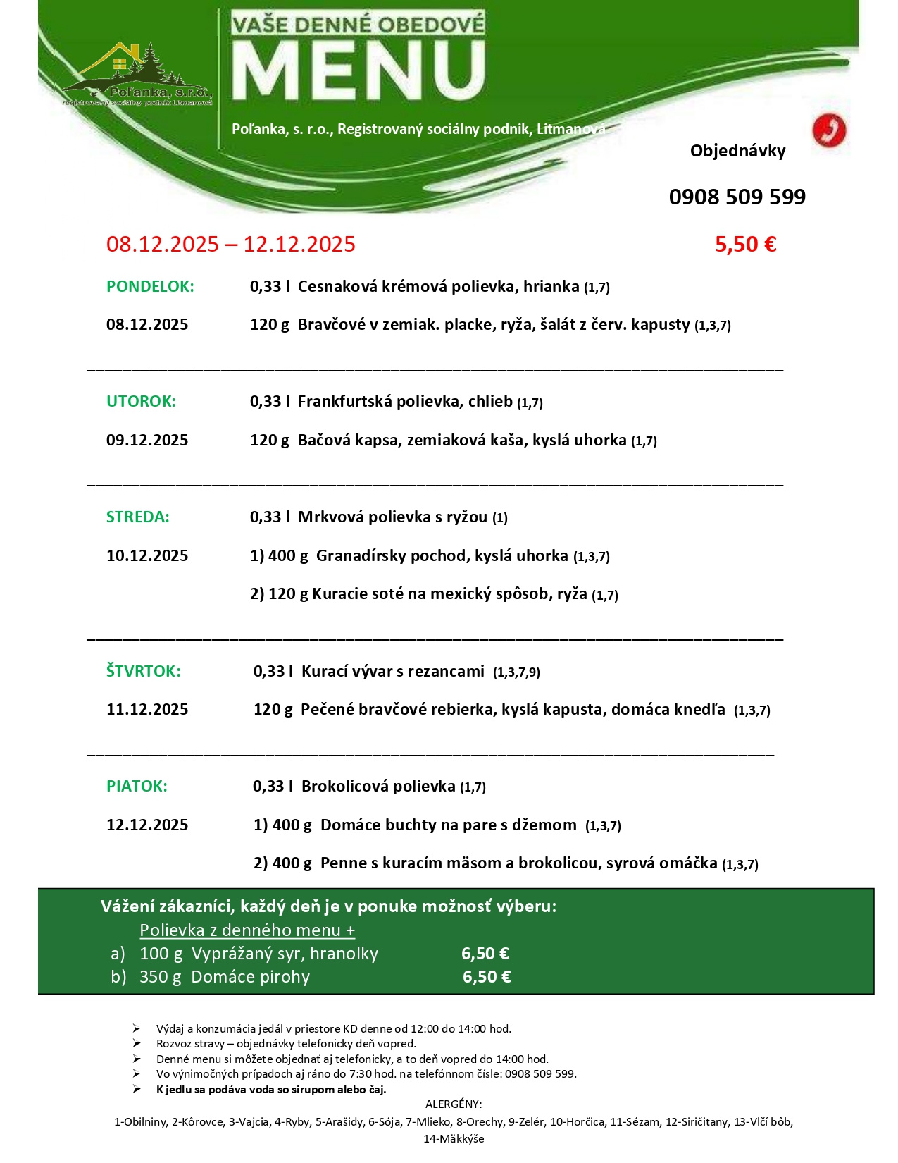 Denné obedové menu 08.12.2025 - 12.12.2025