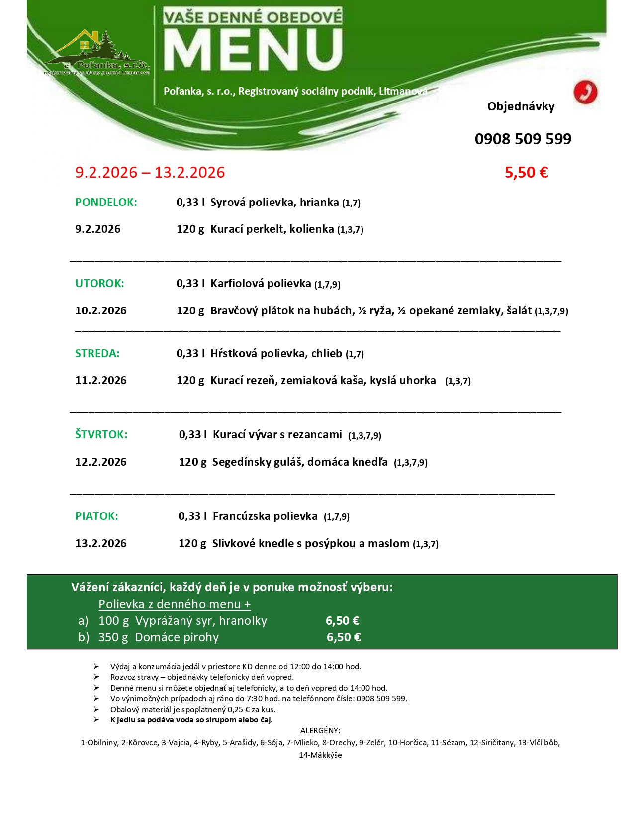 Denné obedové menu 09.00.2026 - 13.02.2026