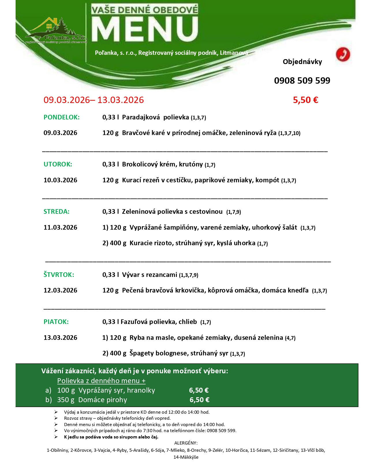 Denné obedové menu 09.03.2026 - 13.03.2026