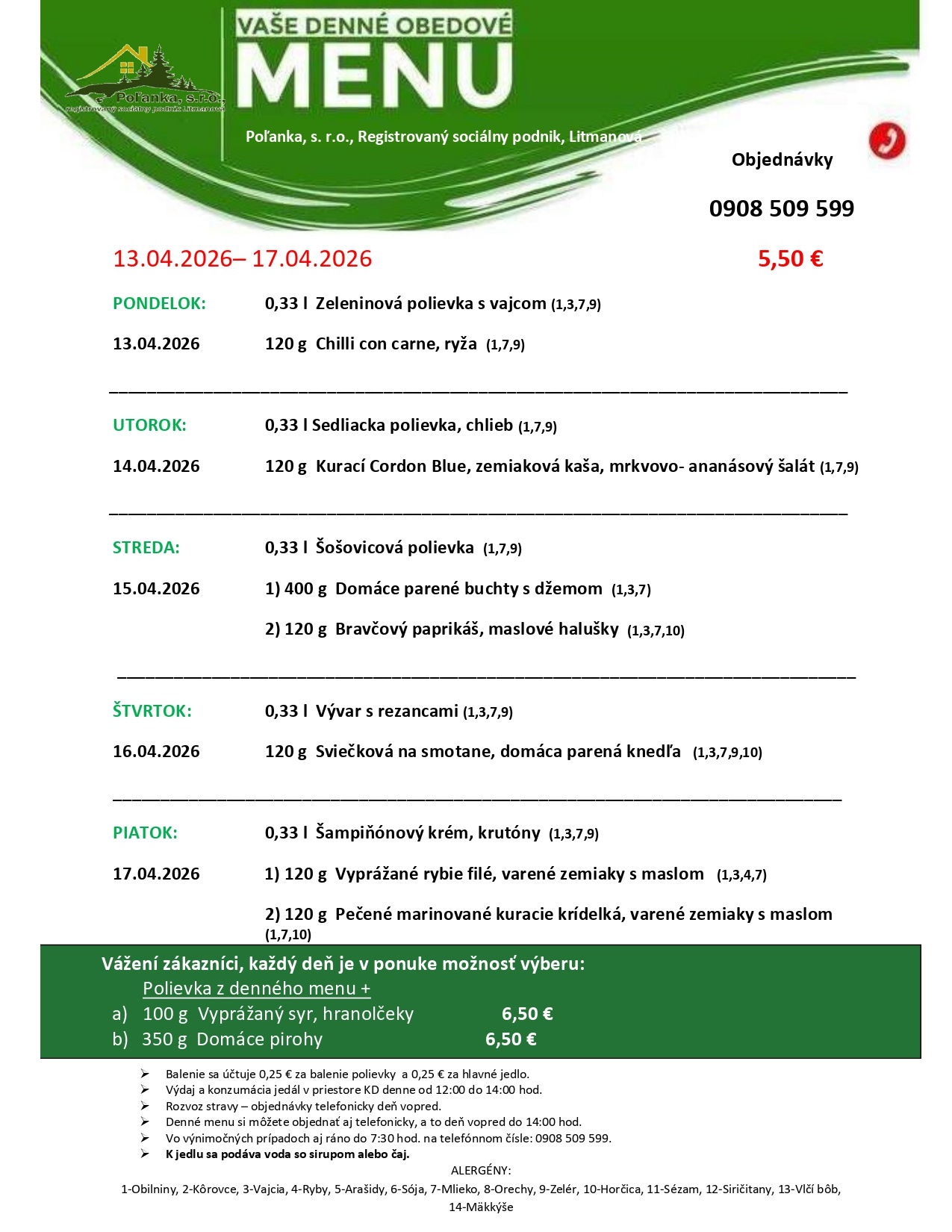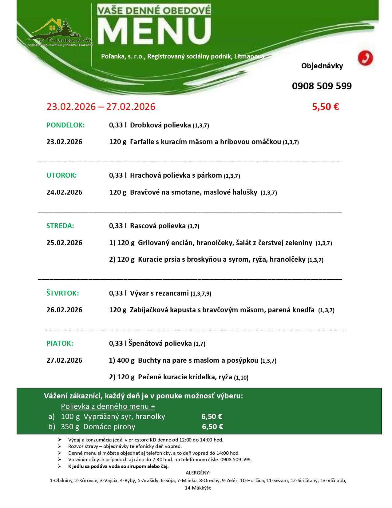 Denné obedové menu 23.02.2026 - 27.02.2026