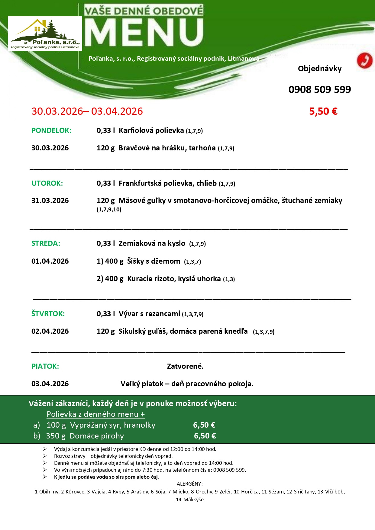 Denné obedové menu 30.03.2026 - 02.04.2026
