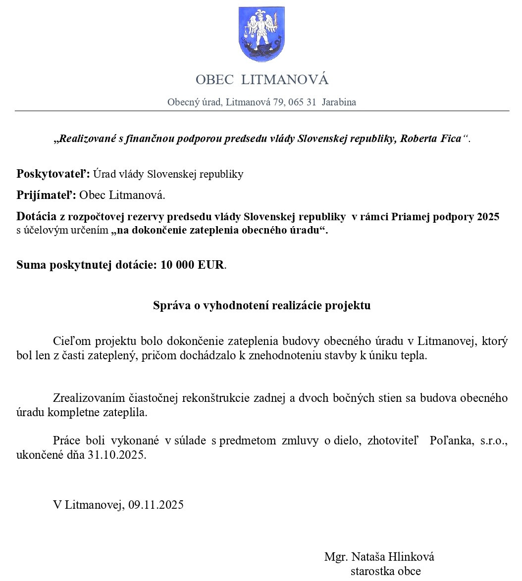 Projekt - Dokončenie zateplenia obecného úradu